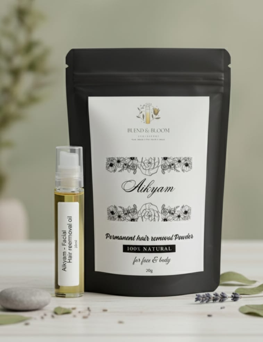 Aikyam – Natural Hair Removal Combo - 10ml oil & 20g Aikyam powder